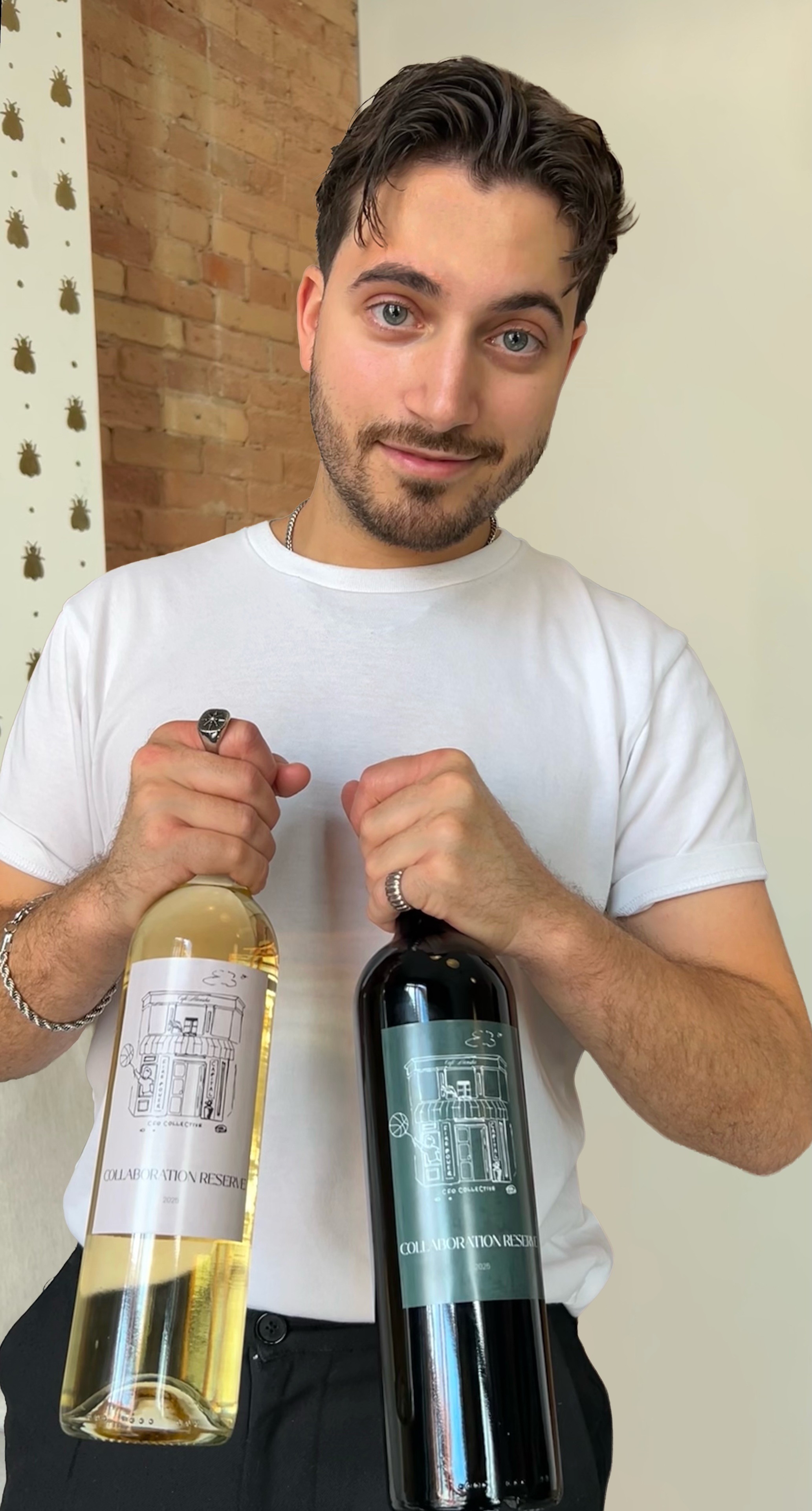 Custom wine labels with hand-drawn illustrations, created for a business event